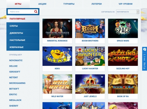 - Слоты – внушительный выбор игровых автоматов разных типов;