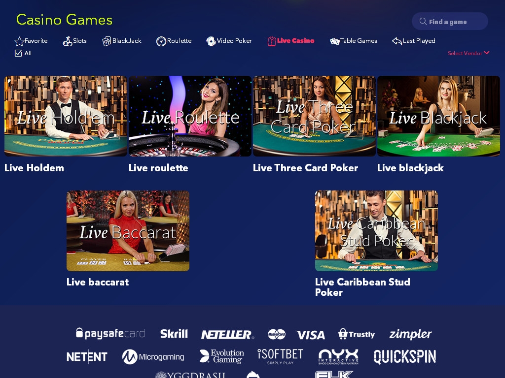 - Live Casino NightRush – игры с реальными крупье;