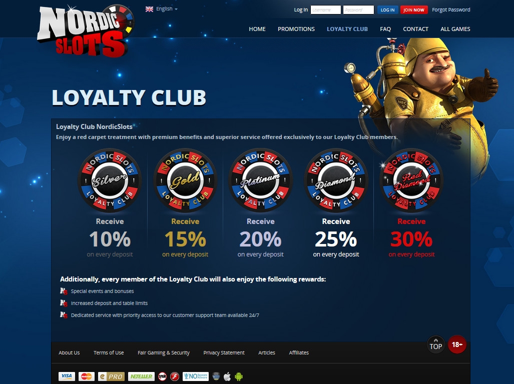 Играть в казино «Нордик Слотс» можно на евро. Депозиты принимаются банковскими картами и несколькими электронными системами, включая Neteller и Skrill. Те же методы можно использовать для вывода денег со счета.