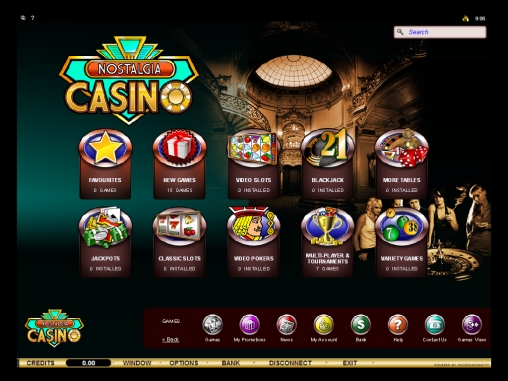 Клиенты Nostalgia могут наслаждаться более чем 430 играми, среди которых огромное количество слотов, множество разновидностей видео-покера, а также рулетка, блэкджек и другие карточные и настольные игры. Учитывая, что игры предоставлены Microgaming, можно не сомневаться в их великолепной графике, функциональности, обилии настроек и стабильности работы. Список игр регулярно пополняется новыми образцами. Во многих играх можно стать обладателем прогрессивного джек-пота.