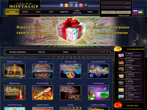 Прежде всего, следует предупредить читателей, чтобы они не путали рассматриваемое в обзоре заведение с крупным сайтом Nostalgia, работающим на платформе Microgaming. Интернет-казино «Ностальгия», о котором пойдет речь ниже, не имеет к нему отношения и предлагает совсем другой комплекс услуг.
