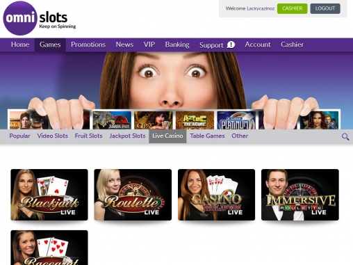 В Omni Slots можно также играть за столами, которые обслуживают реальные крупье. Они работают в студии компании Evolution Gaming, являющейся поставщиком программного обеспечения для данного формата азартных развлечений. В таком режиме предлагаются блэкджек, рулетка, холдем покер и баккара. Подробнее о лайв-казино «Омни Слотс» будет рассказано в отдельной статье соответствующего раздела нашего сайта.