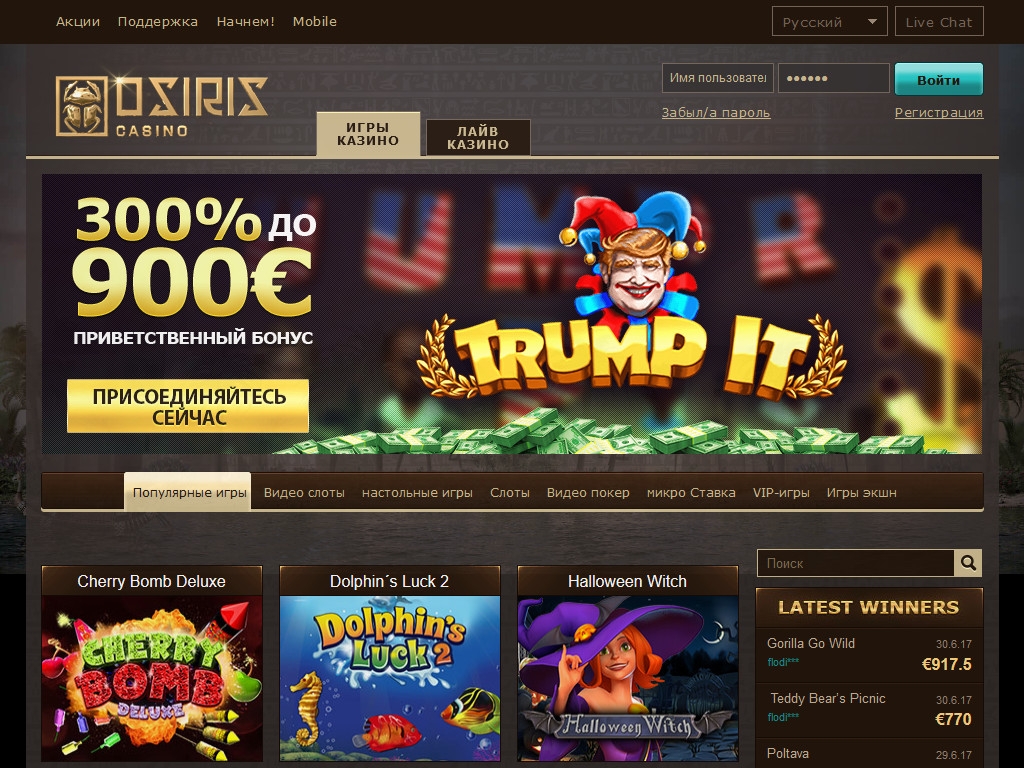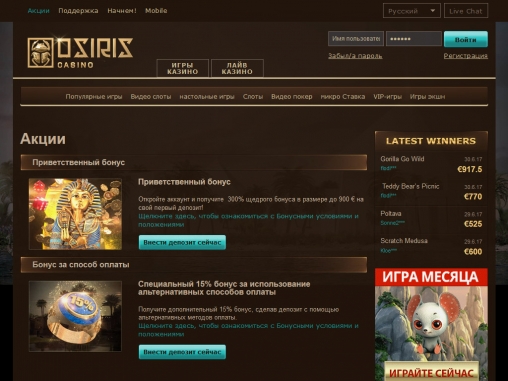 Онлайн-казино Osiris названо в честь владыки загробного мира и бога возрождения из мифологии древних египтян. Это заведение понравится любителям разнообразных азартных игр, интересных бонусных предложений и стильного дизайна.