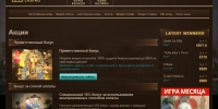 В оформлении сайта наибольшее впечатление производят эффектные баннеры с рекламой самых интересных акций, которые предлагаются клиентам. Также очень изысканно смотрится сияющий логотип с жуком-скарабеем. Общее впечатление от дизайна более чем положительное.