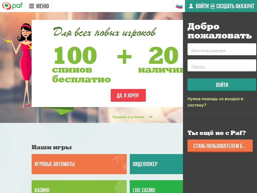 О бонусной программе Paf вы сможете прочитать в правилах казино на официальном сайте. Чтобы получить пригласительный бонус на первый депозит, нужно ввести код при регистрации аккаунта.