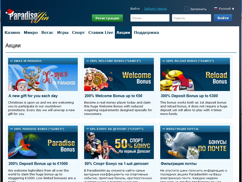 Периодически в ParadiseWin устраиваются розыгрыши и другие мероприятия. Следите за расписанием акций на официальном сайте.