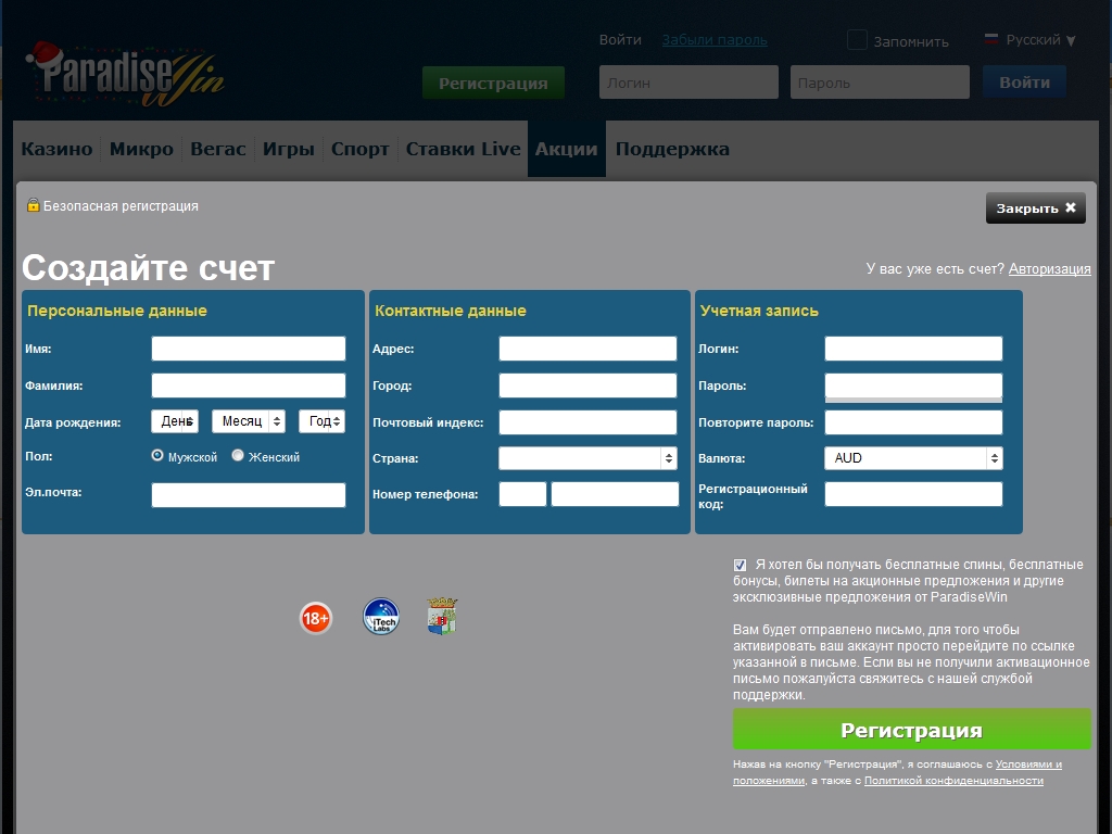 Регистрировать аккаунты в ParadiseWin могут лишь совершеннолетние пользователи, не проживающие в странах, которые входят в специальный список исключенных государств и территорий. Вы найдете его ниже.