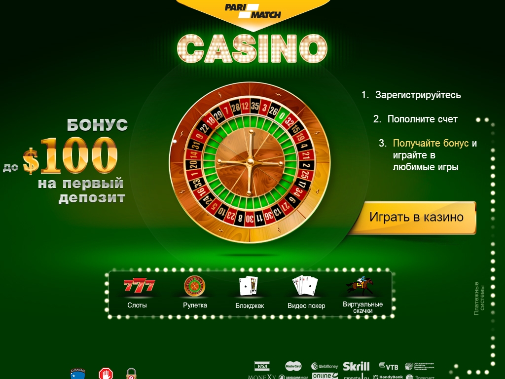 В качестве игровой валюты в казино «Пари-Матч» можно использовать различные денежные единицы, включая доллары США, евро, рубли, гривны и другие. Для внесения депозитов доступны такие методы: WebMoney, MasterCard, Visa, Яндекс.Деньги, Skrill/Moneybookers, кошелек QIWI, МТС, Moneta.ru, Мегафон, Приват Банк и прочие платежные системы.