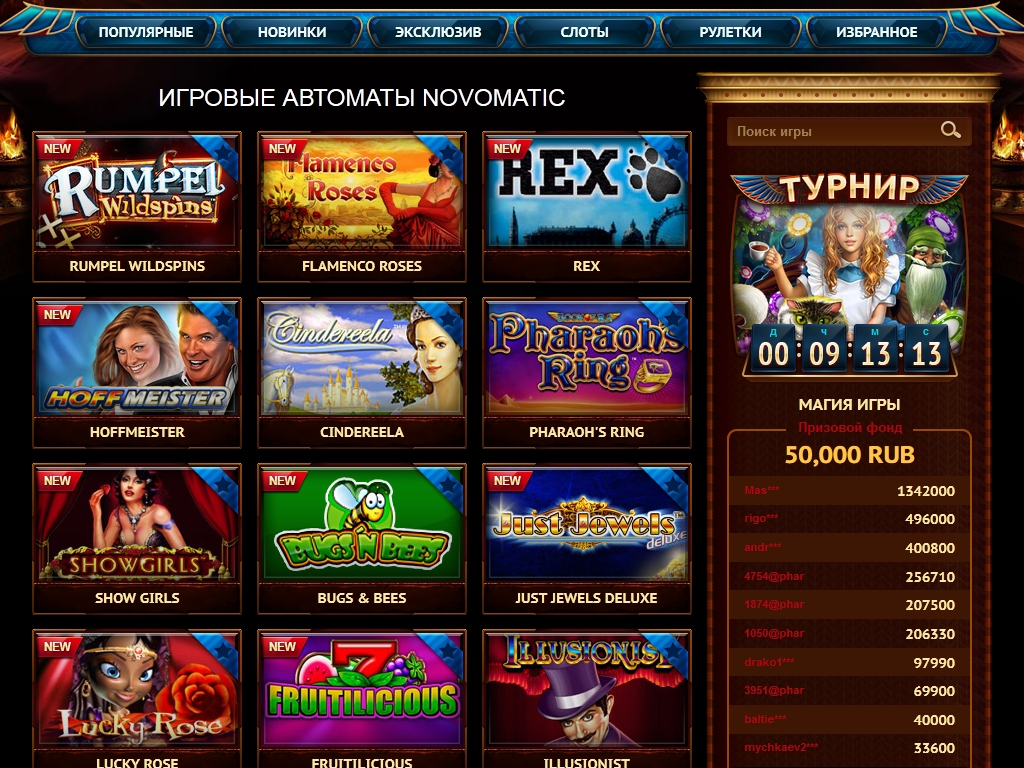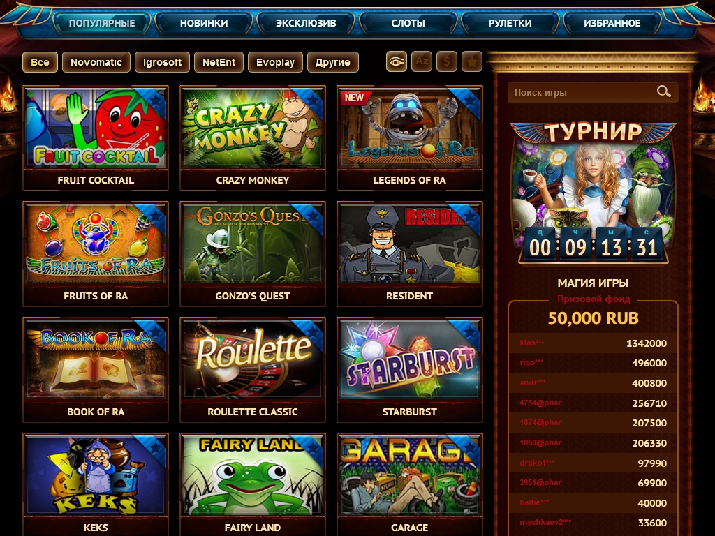 Как уже говорилось выше, заведение работает на софте нескольких производителей. Больше всего здесь слот-машин Novomatic и Igrosoft. Также есть модели от Evoplay, Net Entertainment и некоторых других брендов.