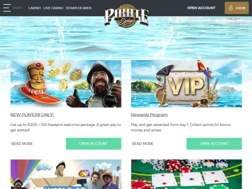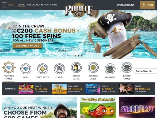 Интернет-казино PirateSpin («Спин пирата») приглашает любителей всевозможных азартных игр, крупных бонусов, разнообразных поощрительных акций, прогрессивных джекпотов и увлекательных турниров.