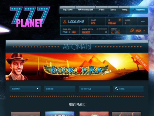 В этом обзоре мы рассмотрим русскоязычное онлайн-казино Planet 777 («Планета 777»), посетители которого имеют возможность наслаждаться игрой на видео-слотах он нескольких известных производителей. О достоинствах и недостатках заведения читайте дальше.