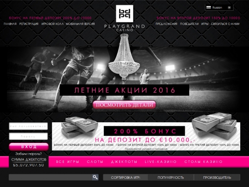Игорный сайт playgrandcasino.com работает с 2000 года, так что в недостатке опыта его владельцев не упрекнешь. За годы плодотворной деятельности он обзавелся многочисленными клиентами и успешно конкурирует со знаменитыми порталами, считающимися лидерами данной сферы. О ключевых плюсах и минусах заведения читайте далее в статье.
