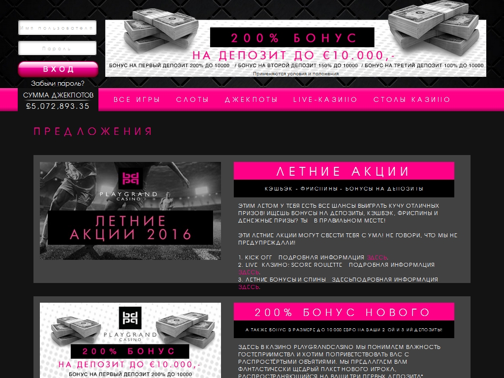 Просим всех пользователей, которые лично пользовались услугами PlayGrand, рассказать о качестве сервиса, бонусах, опыту общения с саппортом и других важных вопросах. Ваши отзывы о казино будут крайне полезны другим читателям Casinoz.