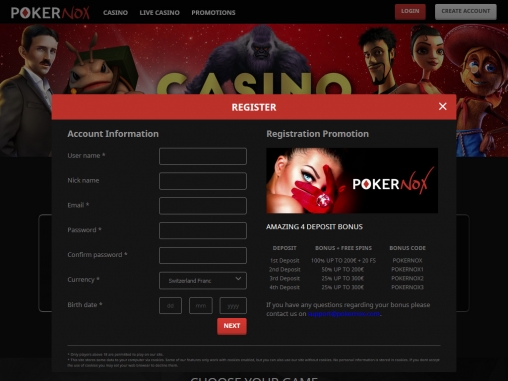 Таким образом, сумма пригласительных бонусов на депозиты достигает одной тысячи евро. Бонусы выдаются по кодам: POKERNOX, POKERNOX1 и так далее.
