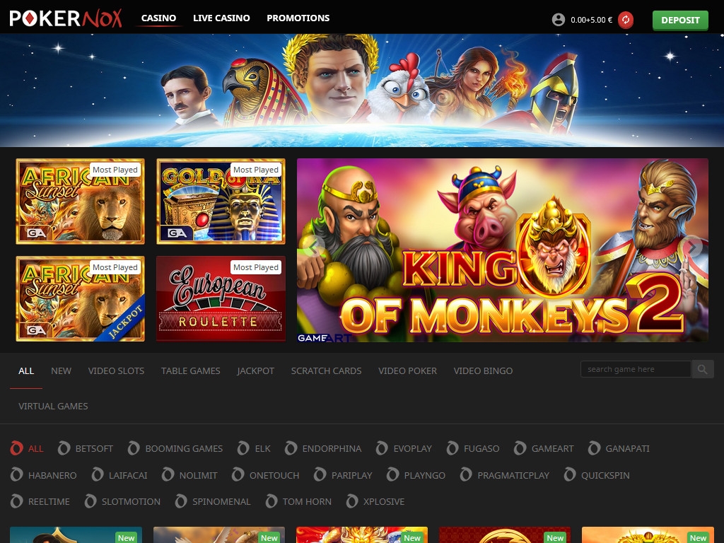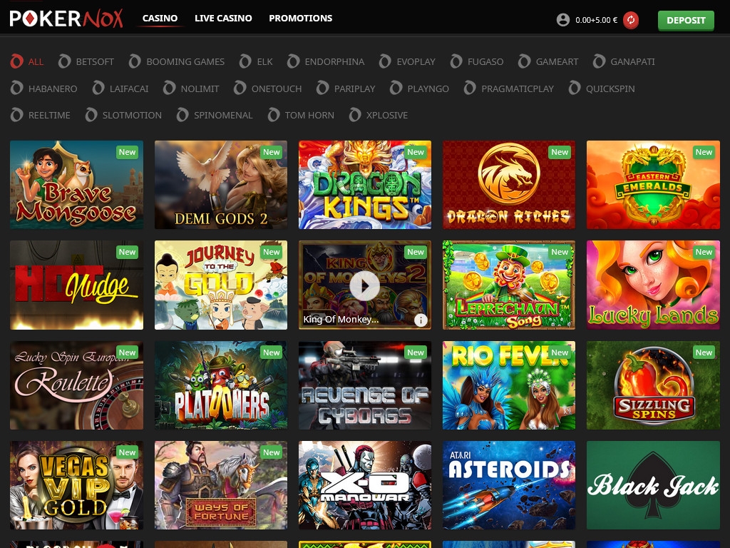 В Pokernox представлены разработки Betsoft, Elk, Play’n GO, Quickspin и других известных и молодых студий.