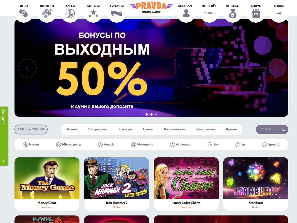 В Pravda.casino представлены азартные игры NetEnt, Microgaming, EGT, Amatic, Novomatic и других популярных разработчиков. Как уже говорилось выше, софт некоторых брендов имеет сомнительное происхождение.