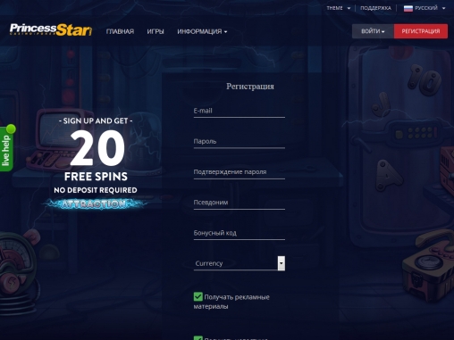Princess Star не позволяет открывать счета несовершеннолетним посетителям и гражданам отдельных стран, законами которых запрещены азартные онлайн-игры. Полный список исключенных государств и территорий предлагается под обзором казино.
