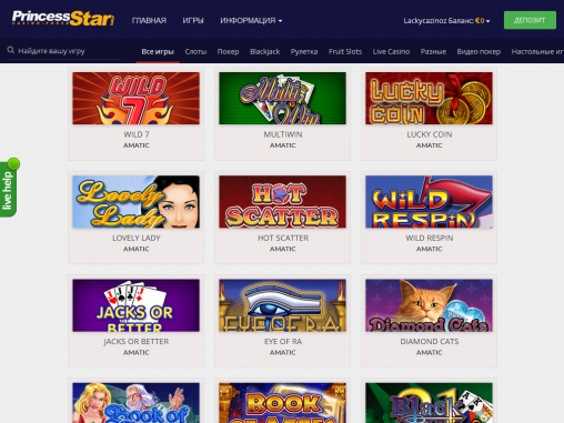 В Princess Star есть модели разных известных производителей, включая NetEnt, SoftSwiss, Amatic, Betsoft Gaming, Endorphina и Ezugi.