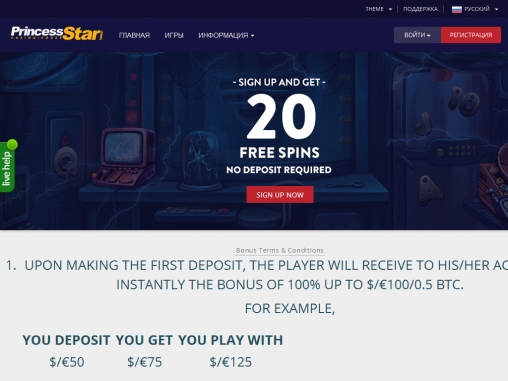Рассматриваемое в обзоре интернет-казино Princess Star является мощным игорным порталом с огромным количеством азартных онлайн-игр ведущих мировых брендов, превосходной системой поощрений клиентов, поддержкой биткойнов и валют разных стран, переводом на разные языки и множеством других важных преимуществ, о которых вы узнаете из обзора.