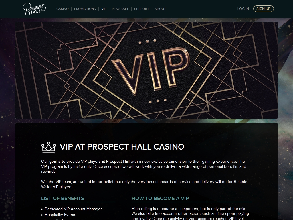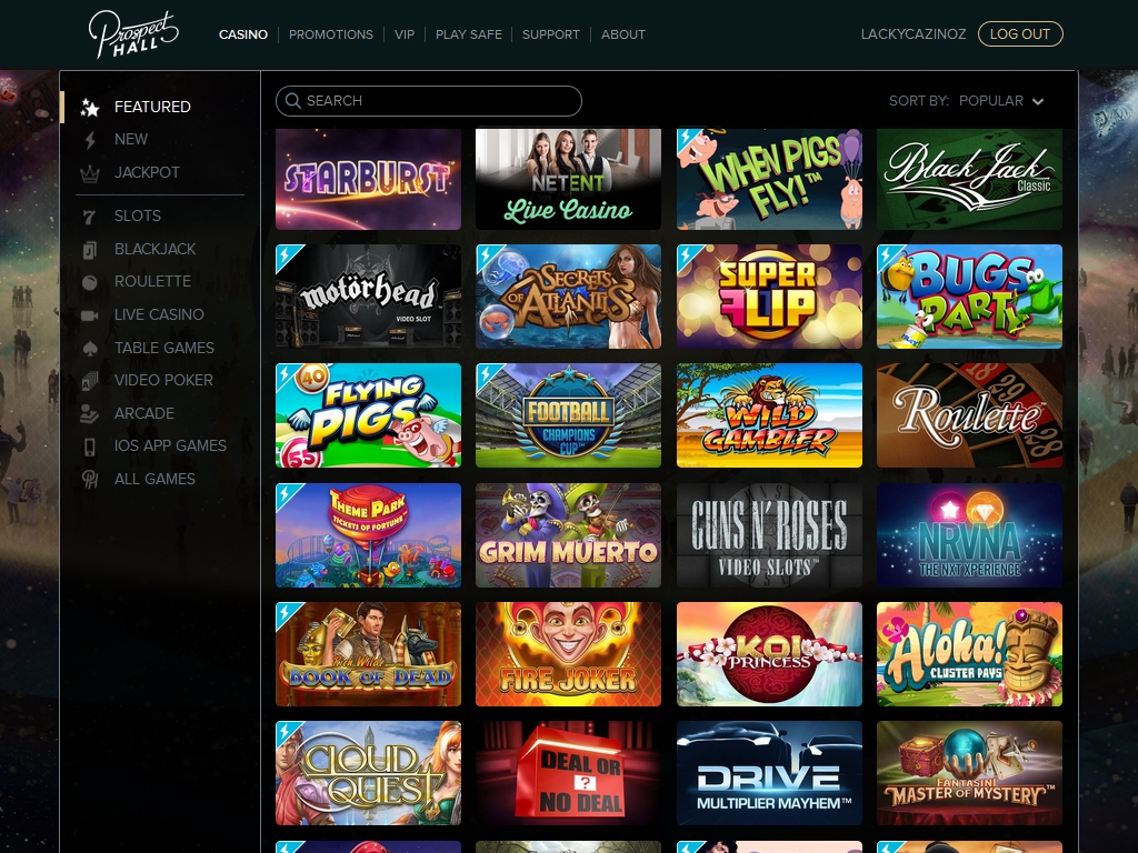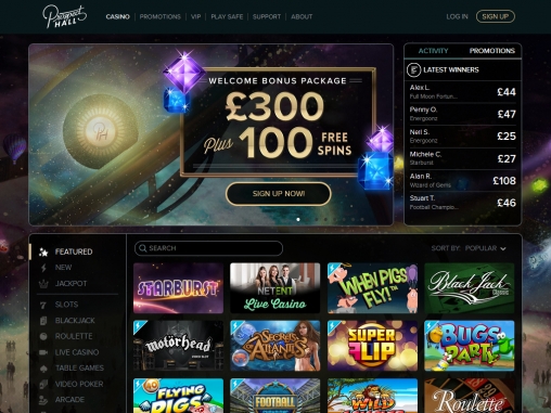 Prospecthallcasino.com обладает стильным дизайном с интересной цветовой гаммой, лаконичным логотипом, красочными баннерами, понятным меню и максимально понятной системой навигации.