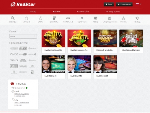 Формат «Red Star live» придется по душе тем пользователям, которые предпочитают играть против живых дилеров. Поддерживаются следующие игры: рулетка, баккара, блекджек.