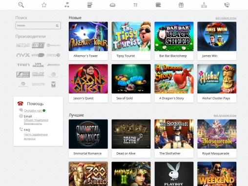 На главной странице вас ждет основная информация об услугах казино