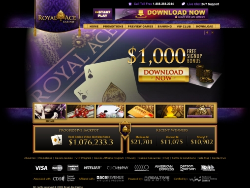 Не всем русскоязычным пользователям удастся поиграть в Royal Ace Casino, ведь это казино не принимает клиентов из многих стран Восточной Европы. Но тем, кому не будет отказано в обслуживании, смогут насладиться бонусной программой, разнообразными играми от RTG и прочими предложениями.