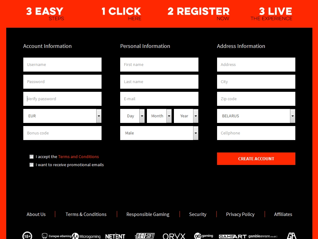 Внешний вид сайта никого не оставит равнодушным. Он оформлен в агрессивных красно-черных тонах, практически без участия других цветов. Иконки онлайн-игр представлены в монохроме. На огромных баннерах рекламируются самые популярные слоты, бонусы и другие акции. Следует отметить максимально удобную структуру меню с логичными и понятными разделами. В общем, исследовать портал приятно и комфортно.