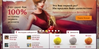 При первом запуске сайта появляется красочная заставка с общей информацией о казино и предложением выбрать удобный язык. Далее открывается непосредственно портал, обладающий интересным и красочным дизайном. Он выдержан с преобладанием оттенков красного и золотистого цветов.