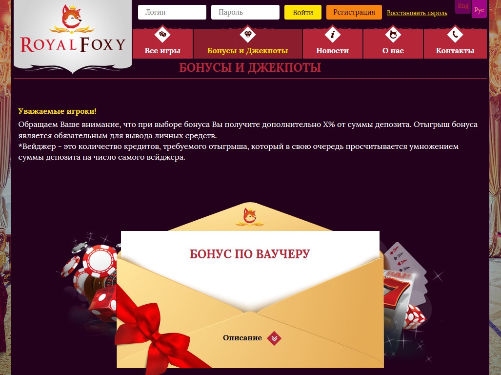 RoyalFoxy.com представляет собой веб-портал с азартными онлайн-играми нескольких производителей, всевозможными поощрительными акциями, эффектным оформлением, поддержкой разных платежных систем и валют. Заведение также не лишено существенных недостатков, о которых наши читатели также должны знать.