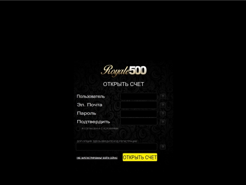 Для регистрации аккаунта в Royale 500 нужно заполнить подробную анкету. Данный процесс не займет у вас больше нескольких минут.