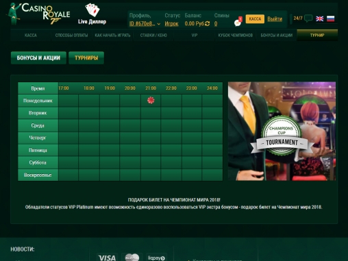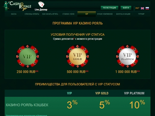 Разнообразные бонусы, азартные игры сомнительного происхождения, единый джекпот, турниры между клиентами, программа лояльности – это и многое другое предлагает клиентам интернет-казино «Рояль». О его сильных и слабых сторонах идет речь далее в обзоре.
