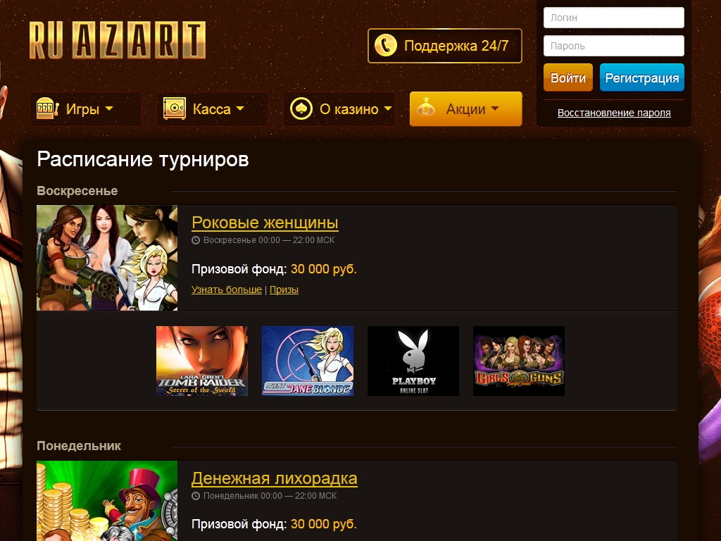 Уже по названию интернет-казино «РуАзарт» можно догадаться, что оно ориентировано на русскоязычных клиентов. Соответственно, здесь созданы максимально комфортные условия для пользователей, которые говорят на русском и проживают в странах, где этот язык является, если не государственным, то общеупотребительным.