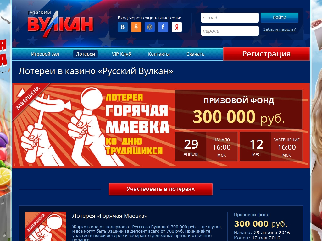 В интернет-казино «Русский Вулкан» работает обширная система поощрений, состоящая из многочисленных бонусов и других акций: