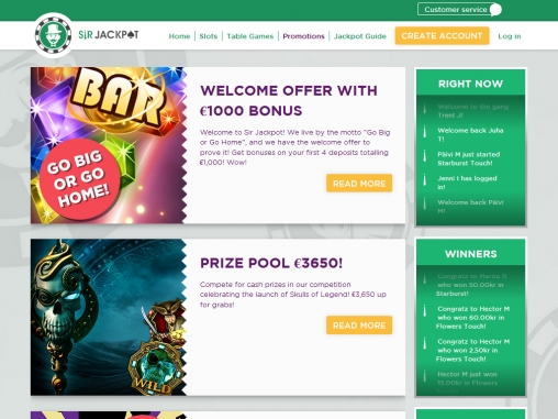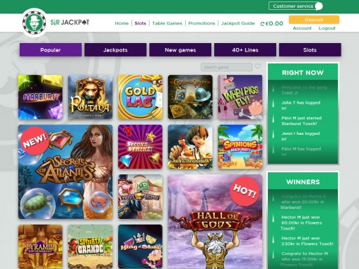 По названию Sir Jackpot можно догадаться, что руководство рассматриваемого в статье казино делает ставку на прогрессивные джекпоты. Действительно, здесь они доступны в разных играх. Более того, им посвящена отдельная страница с подробными объяснениями. Но не стоит думать, что заведение привлекает клиентов исключительно джекпотами. В числе его многочисленных достоинств хороший выбор игр, солидные бонусы и другие важные особенности.