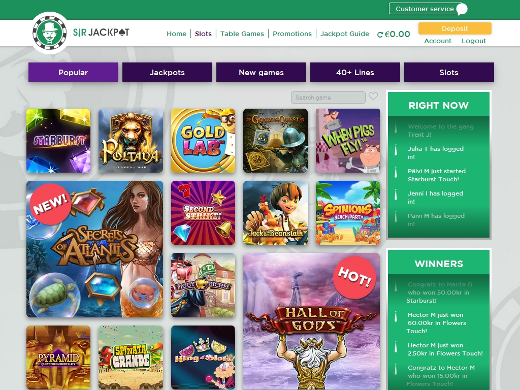 Вы сможете играть в Sir Jackpot на евро. Депозиты принимаются банковскими картами, а также посредством некоторых распространенных платежных систем.