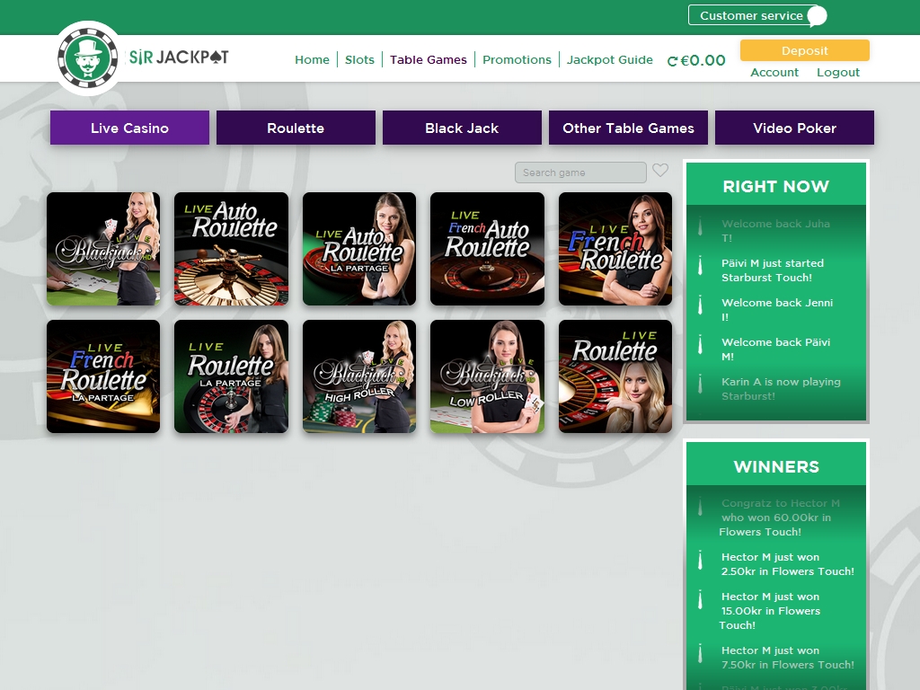 С настоящими крупье в Sir Jackpot можно играть в несколько разновидностей покера, блэкджека, рулетки. Есть также баккара и другие игры. Дилеры обладают приятной внешностью и говорят на разных языках. Программное обеспечение live casino обладает удобным интерфейсом и многочисленными параметрами. За столами действуют разные лимиты ставок.