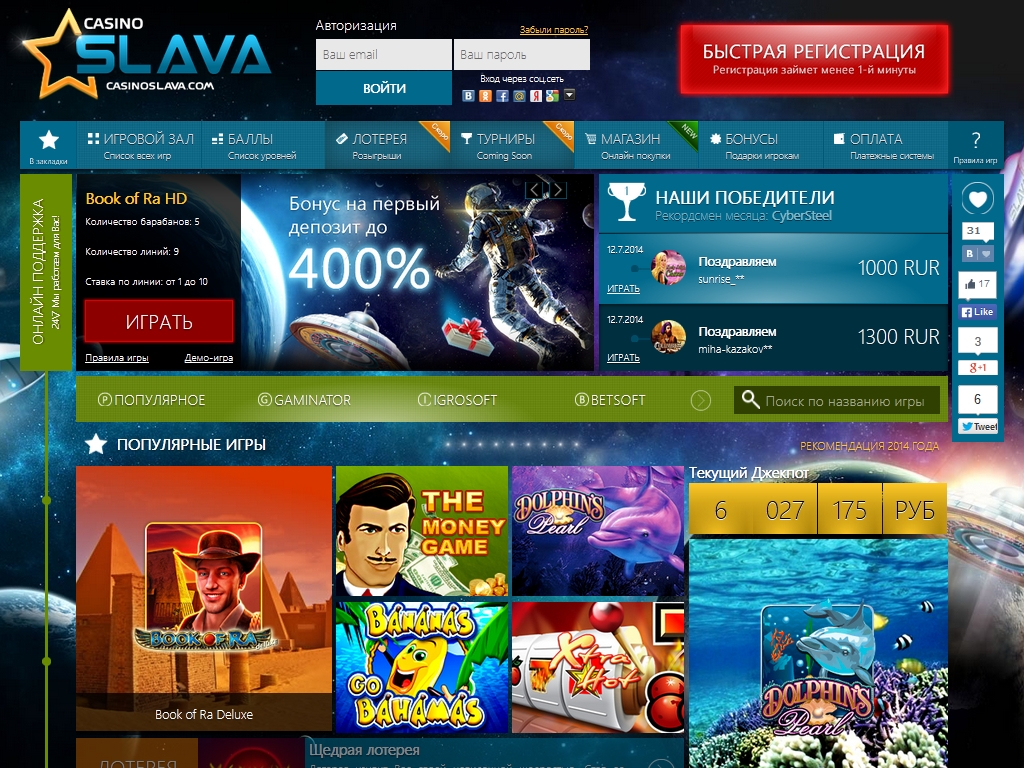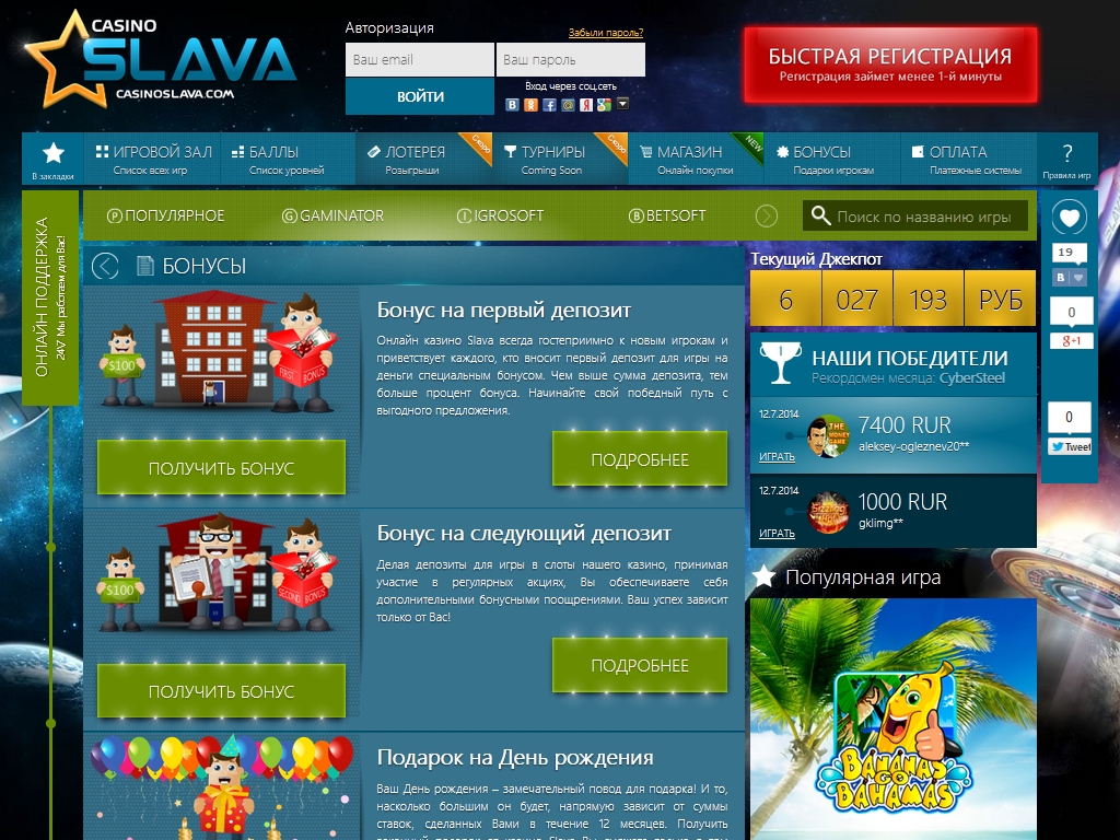 Slava Casino, о котором рассказывается в этом обзоре, работает на рынке интернет-гемблинга с 2010 года, успев с тех пор завоевать доверие многочисленных клиентов. Оно ориентировано на русскоязычных клиентов.