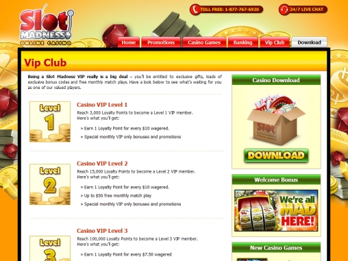 Кроме того, в Slot Madness Casino действует программа лояльности и другие акции: Happy Hour (150% бонус на депозиты, сделанные в определенное время в понедельник), Terrific Tuesday (двойные баллы лояльности на блэкджеке по вторникам), Triple Treat ($50 бесплатно тому, кто делал депозиты в понедельник, вторник и среду) и так далее. Полный список мероприятий доступен на официальном сайте в разделе Monthly Promotion.