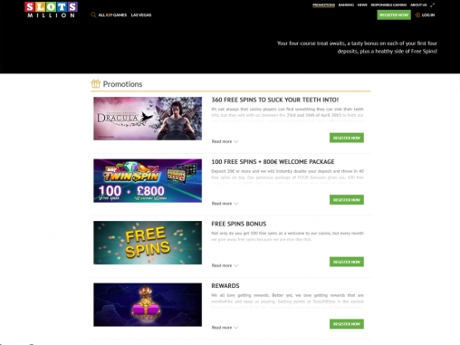 Онлайн-казино «Слотс Миллион» наверняка придется по вкусу любителям всевозможных азартных игр разных брендов и тематик, ведь здесь их более чем достаточно. Кроме того, клиентам предлагаются многочисленные поощрительные акции, бонусы и мероприятия, выбор которые способен впечатлить даже самых требовательных пользователей.