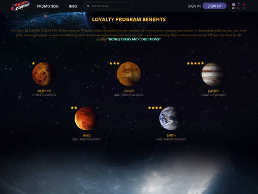 - Программа лояльности, состоящая из нескольких уровней. По ней игроки автоматически получают баллы за ставки. Накопленные очки меняются на кредиты по курсу, зависящему от статуса клиента.