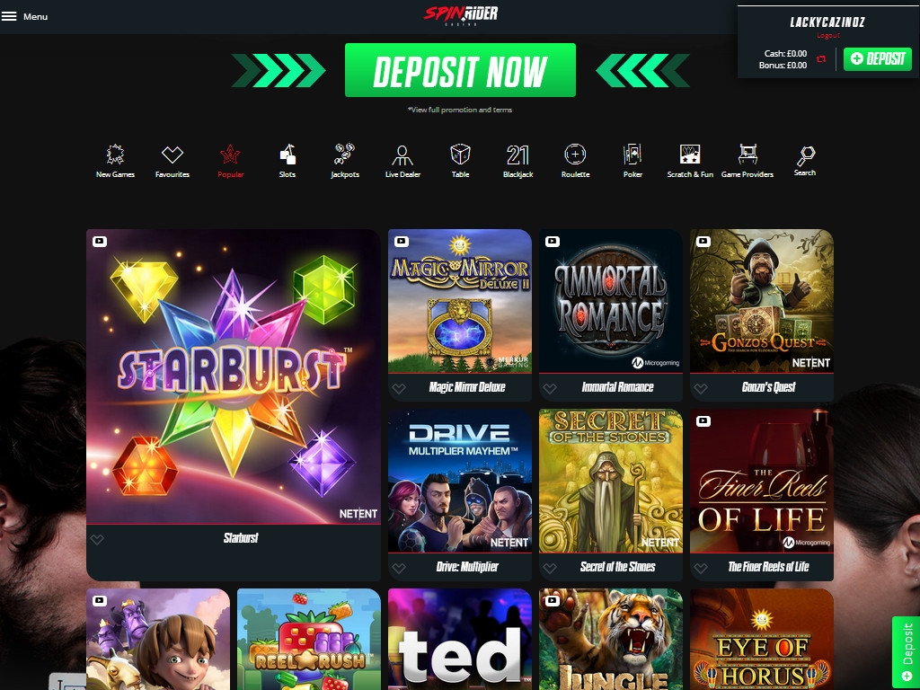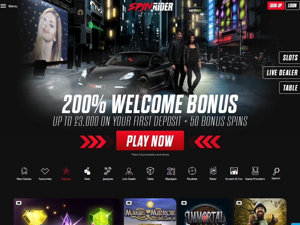 - Лайв-казино Spin Rider с разными играми;