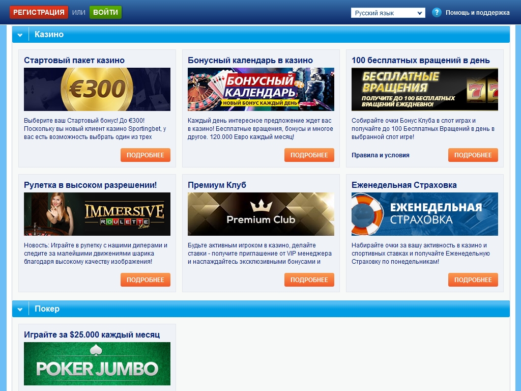 Sportingbet не хватает совсем немного для того, чтобы стать высококлассным заведением. Возможно, с изменением бонусной политики и с более быстрой установкой софта, оно могло бы претендовать на высокие звания, тем более, что оно имеет для этого все предпосылки.