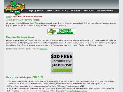 Прежде чем открывать счет, внимательно изучите правила и условия. Обратите внимание на список государств, жители которых не допускаются к игре в казино Strike It Lucky.