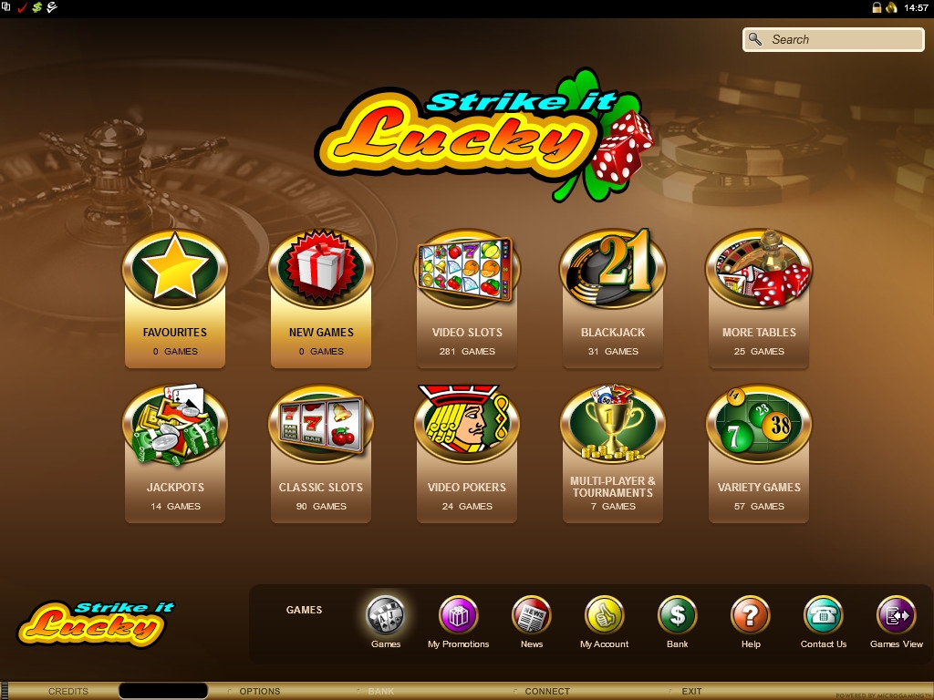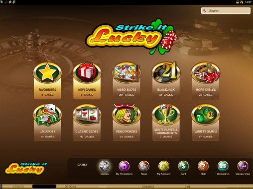 Клиентам предлагаются азартные игры компании Microgaming. Они доступны в скачиваемой и флэш-версиях. В первом случае необходимо установить бесплатную программу, а во втором модели запускаются непосредственно в браузере. Также доступно мобильное казино Strike It Lucky для смартфонов.