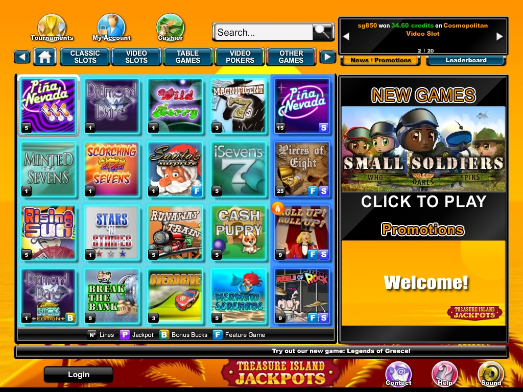 Клиенты Treasure Island Jackpots Casino могут наслаждаться широким выбором азартных игр от BetOnSoft. Данный производитель выпускает оригинальные модели разнообразных жанров. В казино представлены классические игровые автоматы, многофункциональные видео-слоты, все самые популярные настольные и карточные игры, несколько видео-покеров, а также игры других категорий (кено, скрэтч-карты и так далее).