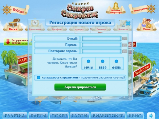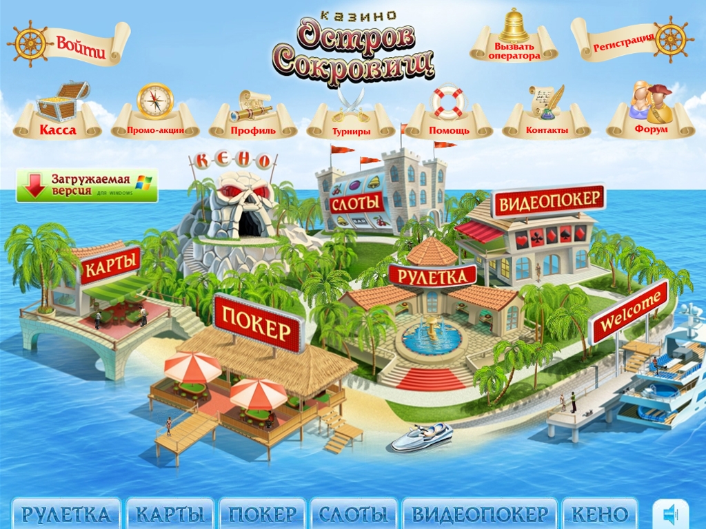 Как утверждают производители, Остров сокровищ – интернет-заведение, сумевшее объединить в одном заведении все качества, которые нужны для того, чтобы стать лидером среди казино онлайн. К сожалению, пока Treasury Island не смогло завоевать столь престижного звания лидера, но, возможно, со временем оно займет главенствующие позиции в рейтинге. Обладая такими качествами, как: контроль честности, разнообразие увлекательных игр, лояльная бонусная политика, множество способов для ввода и вывода средств, различные турниры, Остров сокровищ завоевало любовь уже многих игроков.