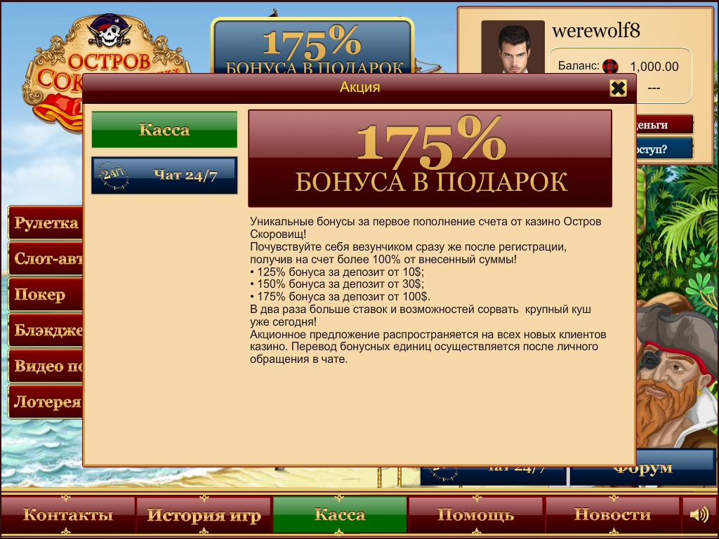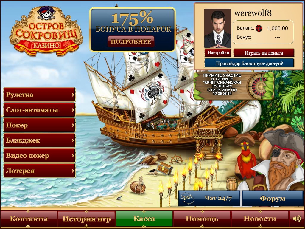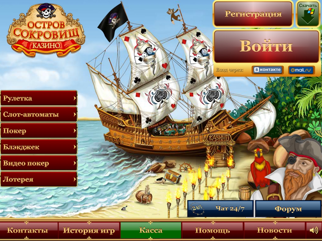 Конечно, в современном интернет-гемблинге много полностью русифицированных игорных сайтов с гораздо большим выбором игр и поощрительных акций. Но многие пользователи все отдают предпочтение заведениям, изначально ориентированным на русскоязычную публику. Таковым является «Остров сокровищ».
