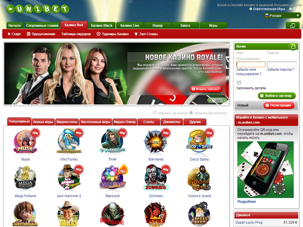 Азартные игры представлены сразу в трех казино Unibet (Red, Black и Games)