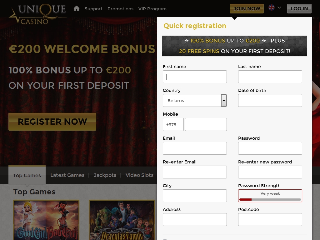 Для регистрации счета, позволяющего играть на деньги, нужно заполнить анкету достоверными данными. Администрация отказывает в обслуживании посетителям из некоторых стран, включая США.